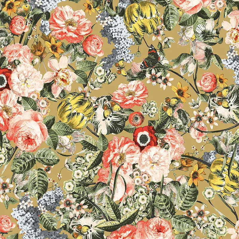 Обои LOYMINA La Belle Epoque BQ1 004 Винил на флизелине (1*10,05) Розовый/Бежевый, Цветы/Бабочки