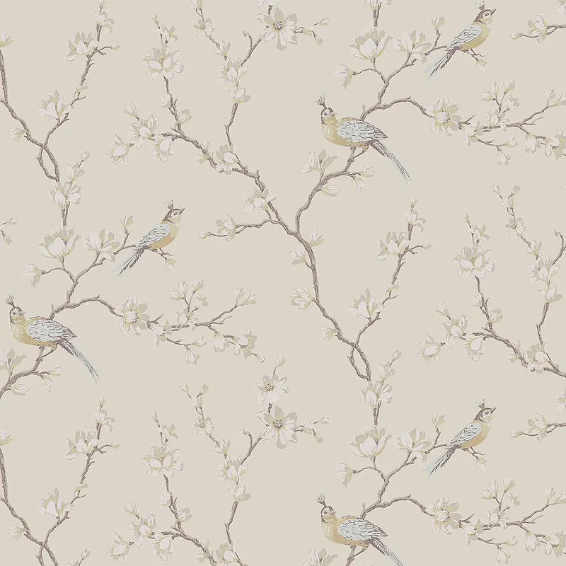 Обои LOYMINA La Belle Epoque BQ5 002/1 Винил на флизелине (1*10,05) Белый/Бежевый, Деревья/Птицы