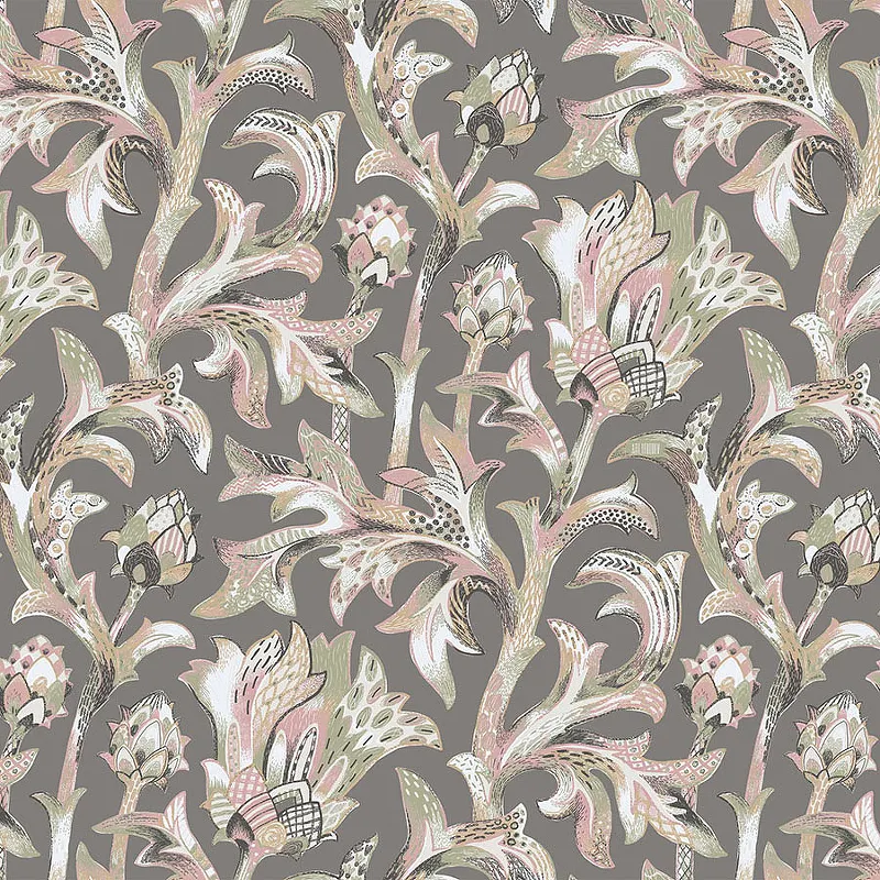 Обои LOYMINA Origins ALS1 011 Винил на флизелине (1*10,05) Серый/Розовый/Зеленый, Вензель