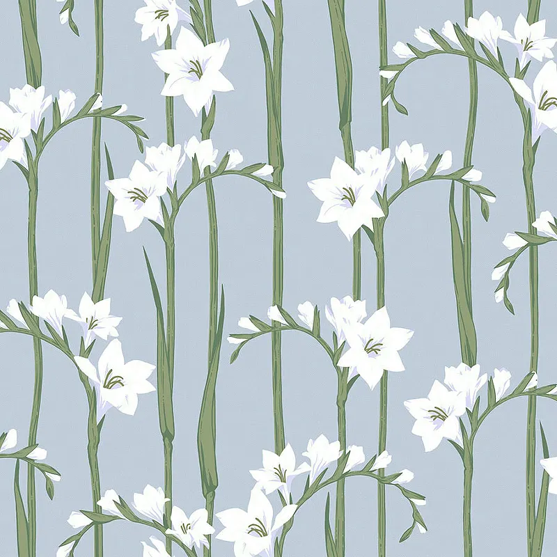 - Винил на флизелине (1*10,05) Голубой/Белый, Цветы