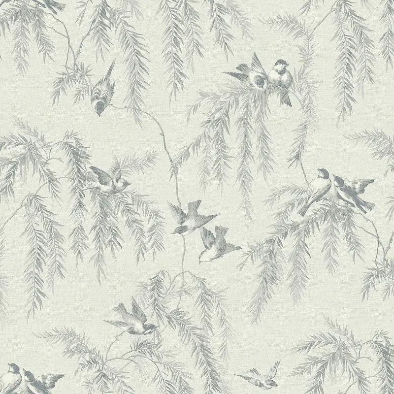 Обои LOYMINA Шелковый путь Флизелин (1*10,05) Серый/Зеленый, Птицы/Листья арт-SLK5 006 — фото 1, Обои для стен