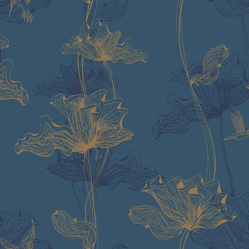 Обои Milassa Ambient AM8 021 Флизелин (1*10,05) Синий, Цветы/Птицы