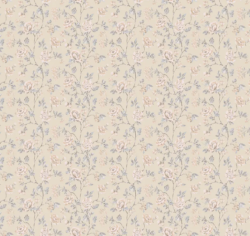 - Бежевые обои с цветочным рисунком: создают атмосферу уюта и элегантности.
