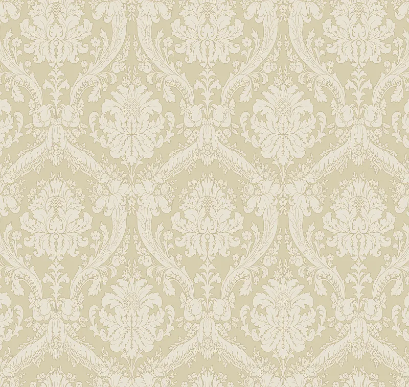 - Флизелиновые обои размером 1 м на 10,05 м в бежевом цвете с дамасским узором.