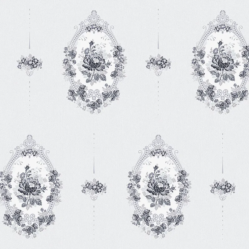 - Рулон обоев: 1*10,05 м, Серый/Черный, Медальоны/Цветы