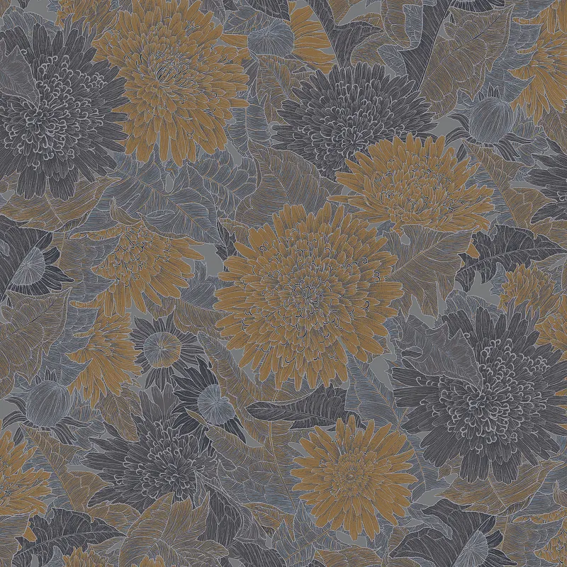 Обои Milassa Микадо KTS6 011 Флизелин (1*10,05) Коричневый/Серый, Цветы