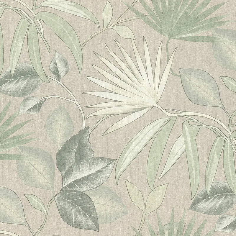Обои RASCH Composition XL 974010 Винил на флизелине (1,06*10,05) Бежевый/Зеленый, Листья