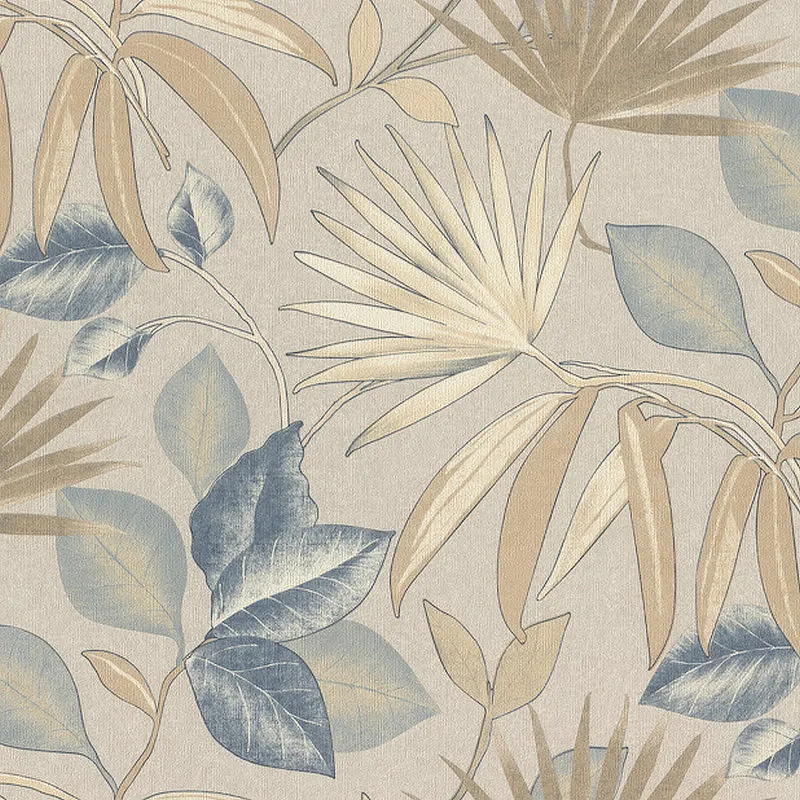 Обои RASCH Composition XL 974027 Винил на флизелине (1,06*10,05) Бежевый/Серый/Синий, Листья