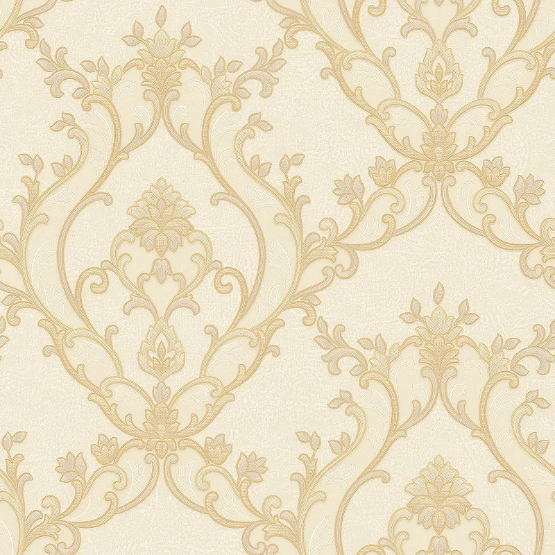 - Стильный дизайн обоев: Рисунок дамаск в сочетании с бежево-золотыми оттенками подчёркивает изысканность интерьера.