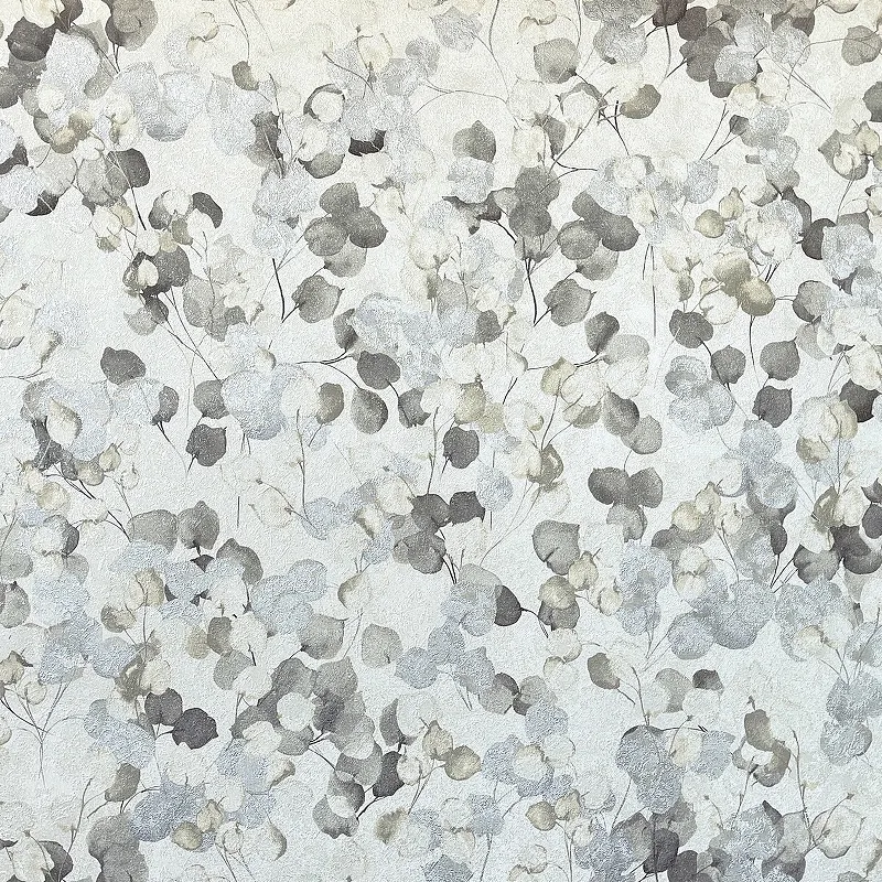 - Виниловые обои на флизелине (1,06*10) с рисунком "Листья" в цветах белый, бежевый и серый.