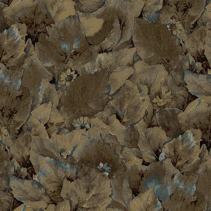 - Универсальный дизайн: Обои с рисунком "Листья" в коричневых, золотых и синих тонах подходят для различных стилей интерьера.