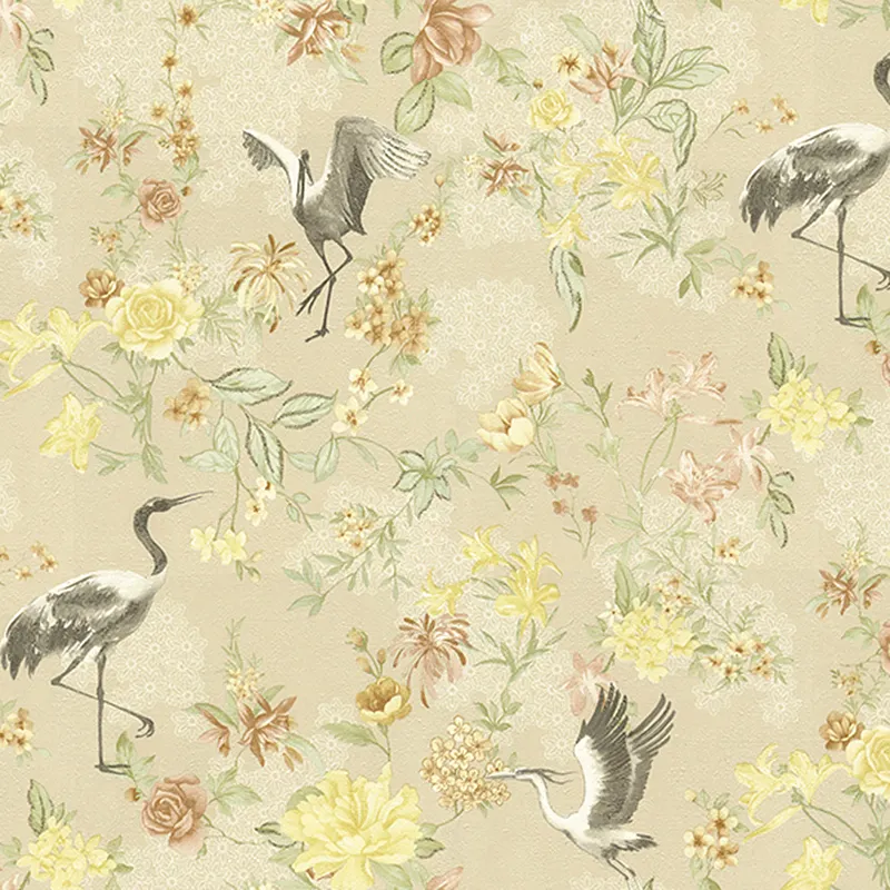 Обои Yien Feerie 3501-2 Винил на флизелине (1,06*10) Бежевый/Разноцветный, Птицы/Цветы
