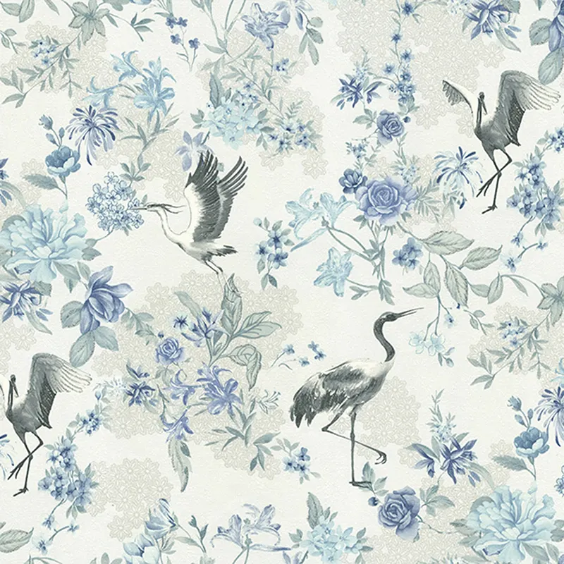 - Винил на флизелине (1,06*10) Белый/Голубой/Серый, Птицы/Цветы