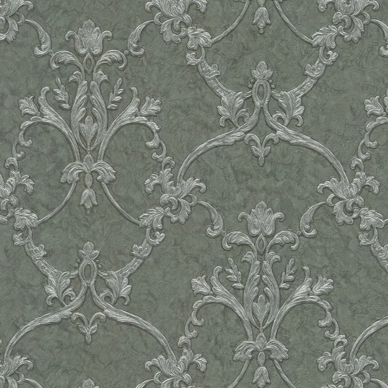 Обои Zambaiti Parati Trussardi VI 46041 Винил на флизелине (1,06*10,05) Зеленый/Серебряный, Штукатурка/Дамаск