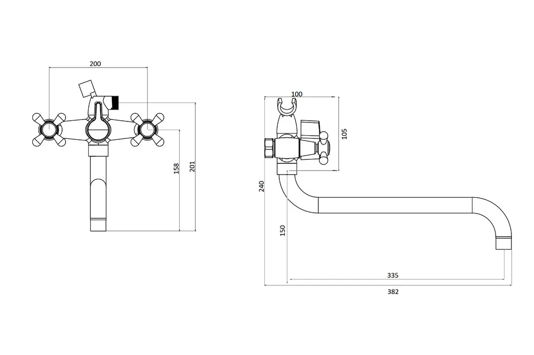 OneLife смеситель для ванны двухвентильный полимерный универсальный с душевым набором, хром арт-P03-221cr