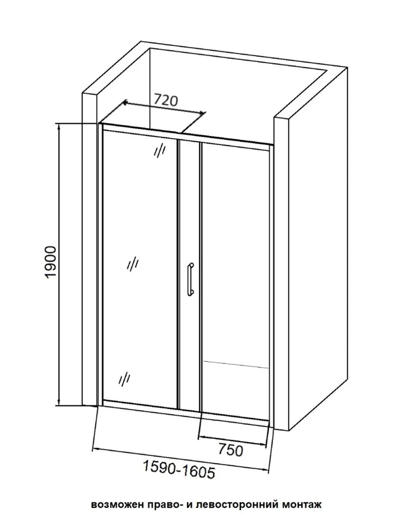 Orange душевое ограждение в нишу с раздвижной дверкой, матовый черный арт-E02-160TB