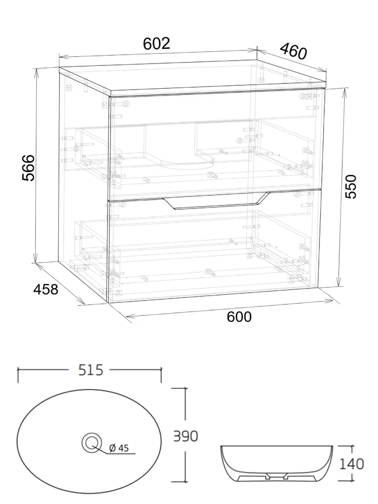 Тумба подвесная с накладной раковиной Orange Line отличается современным дизайном. Изготовлена из МДФ высокой плотности. Мебель покрыта пленкой ПВХ с технологией Soft Touch — ламинация класса премиум, с повышенными тактильными свойствами. Пленка обеспечивает дополнительную защиту мебели от влаги и перепадов температуры. На ящики установлены комплекты скрытых направляющих Hettich, обеспечивающие полное выдвижение и имеющие встроенную систему плавного и бесшумного закрывания. Исполнение - матовое. Материал раковины - фарфор. Отверстия в столешнице под раковину и смеситель монтируются самостоятельно.