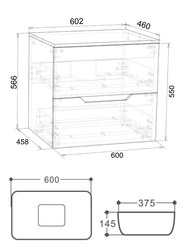 Orange Line тумба с раковиной подвесная 60 см, белый арт-Li-60TuwMDF+B07-600W