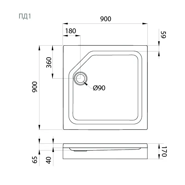 ПД 1 Поддон ДК квадрат 90х90 в комплекте арт-Щ0000004026