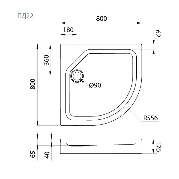 ПД22 Поддон ДК 1/4 круга, низкий 80х80 в комплекте арт-Щ0000038720