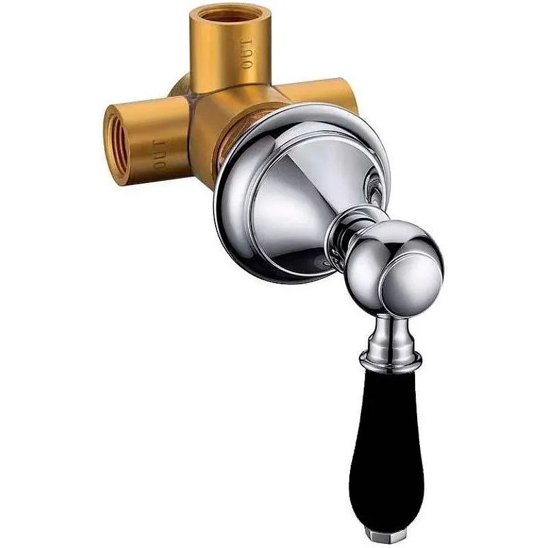 Переключатель потоков Boheme Brillante 624-B.Характеристики: Цвет: хром. Материал: латунь. Ручка: черная керамика. Управление: однорычажное. Стандарт подключения: G 1/2. Монтаж: встраиваемый. В комплекте поставки: Переключатель потоков (внешняя и внутренняя часть).