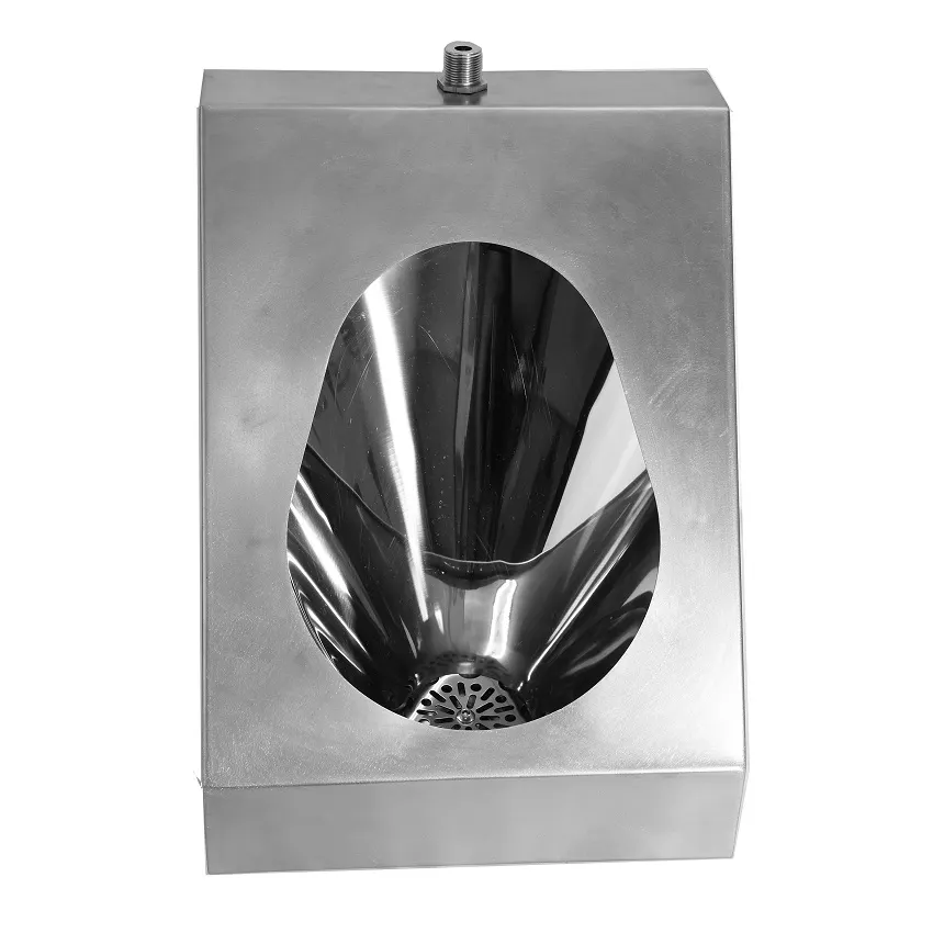 Писсуар из нержавеющей стали AISI 304 имеет матовую шливованную поверхность, чаша изделия полированная. Подключение воды возможно как с внешней, так и с внутренней стороны писсуара.