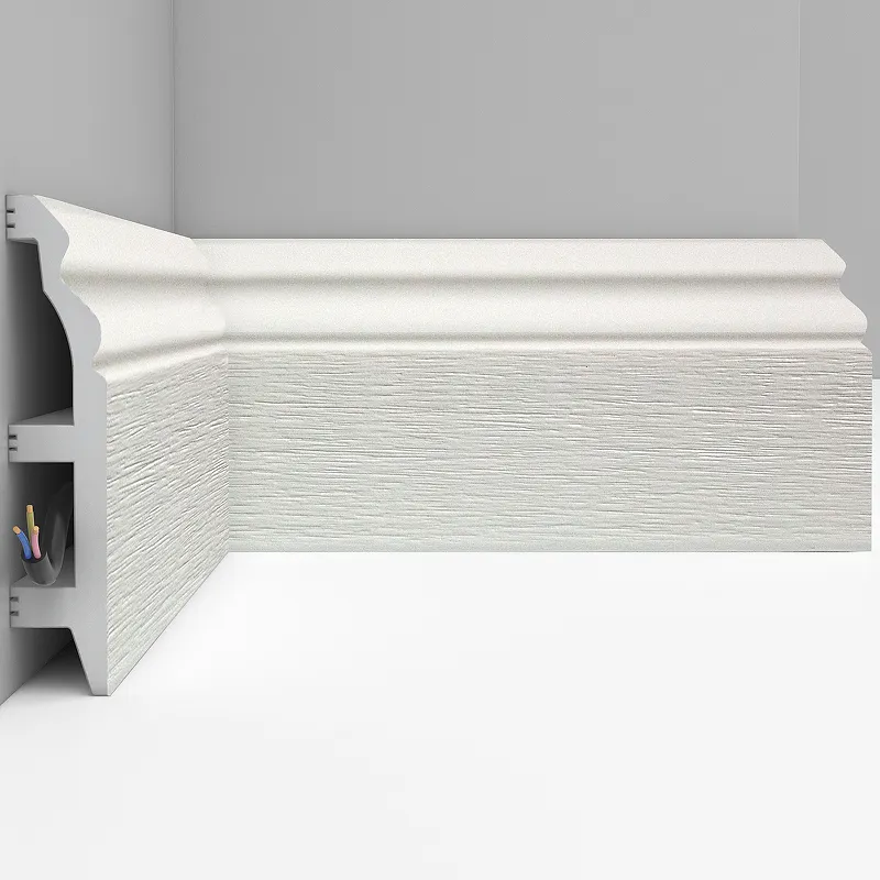 - Универсальный дизайн: Белый цвет позволяет использовать плинтусы напольные в классических и современных интерьерах.