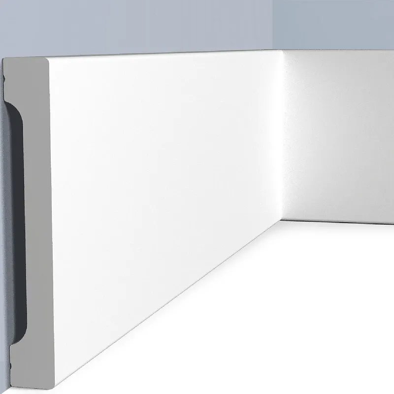 - Прочные напольные плинтуса обеспечивают долговечность и устойчивость к износу, что особенно важно для помещений с высокой проходимостью.