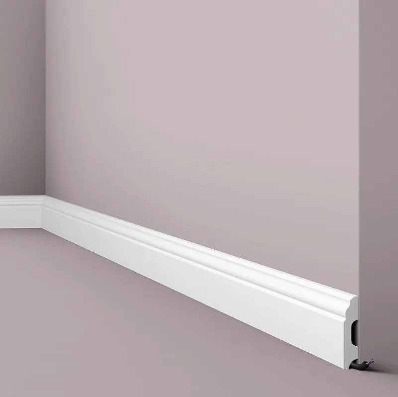 - Универсальный дизайн: Белый цвет плинтуса легко вписывается в любой интерьер, делая его идеальным выбором для современных и классических стилей.