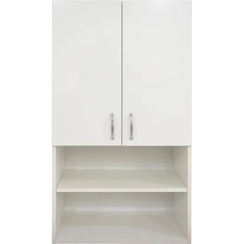 Подвесной шкаф DIWO Суздаль 60 СО-Су08060-01По.Характеристики: Цвет: белый. Материал корпуса: ДСП. Материал фасада: МДФ. Покрытие корпуса: ламинат. Покрытие фасада: пленка/ламинат. Монтаж: подвесной. Габариты (ШxВxГ): 60x110x32 см. Фурнитура цвет: хром. Система хранения: 2 распашные дверцы, открытые и полки внутри. Петли с механизмом доводчика, обеспечивающим плавное закрывание. Расположение петель: с двух сторон. В комплекте поставки: Шкаф. Инструкция.