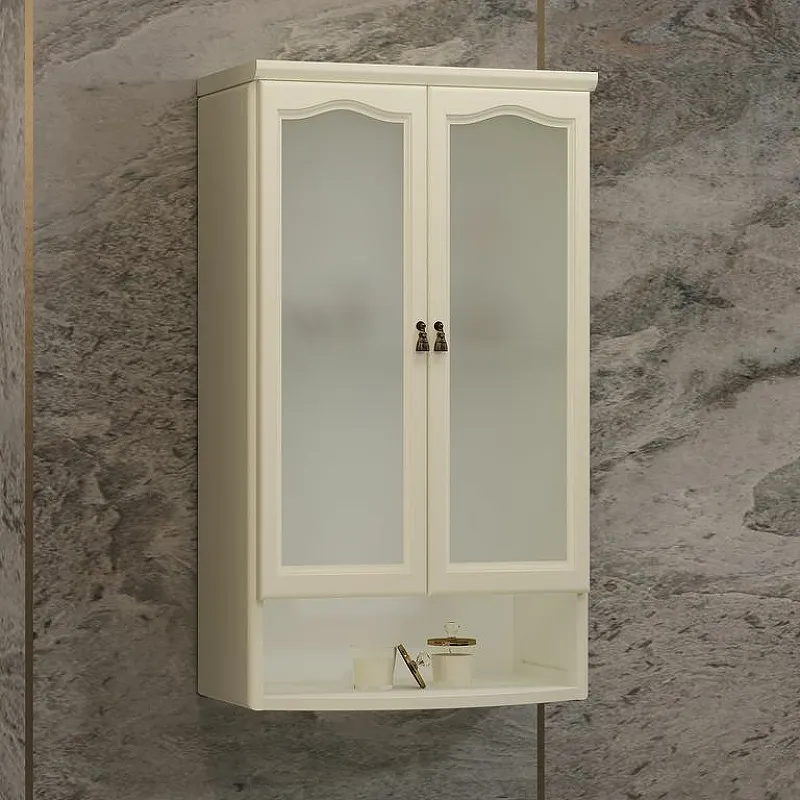 - Шкаф подвесной слоновая кость из массива дерева добавляет элегантность и долговечность.