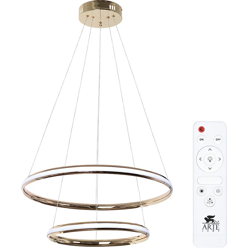 Подвесной светильник Artelamp Meridiana A2198SP-2GO Белый Золото — идеальное решение для создания современного интерьера в гостиной или спальне. Этот стильный светильник от итальянского бренда Artelamp выполнен в стиле хай-тек и оснащен встроенной LED лампой, мощностью 70 Вт. Он обеспечивает равномерное освещение площадью до 8 м². Управление светильником удобно осуществляется с помощью пульта дистанционного управления.
