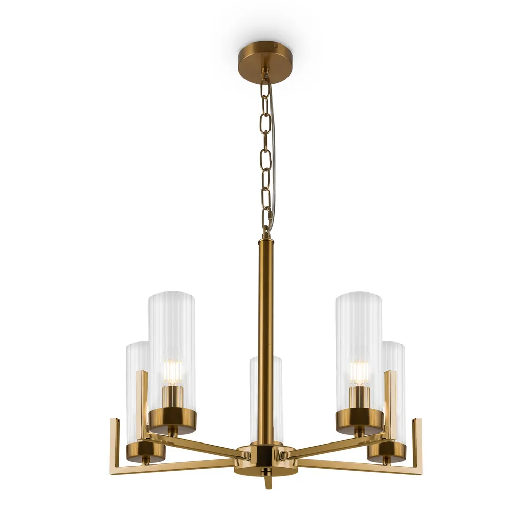 Дизайн на стыке классики и современности, выдержанная эстетика американского стиля в лаконичном исполнении. Adeline – выбор тех, кто ценит традиции. Арматура из металла представлена в оттенках хрома и латуни. Её строгий силуэт подчеркнут минималистичными плафонами-цилиндрами. Граненое стекло с ребристым рисунком – актуальный тренд, создающий модный контраст фактур. Направленные вверх источники света равномерно распределяют световой поток по комнате и визуально приподнимают потолки. В серию входят люстры на 5, 8 ламп и бра – вы можете сформировать комплексный световой сценарий с общим и зональным освещением. Элегантный дизайн актуален для интерьеров в стиле неоклассика, ар-деко, модерн.