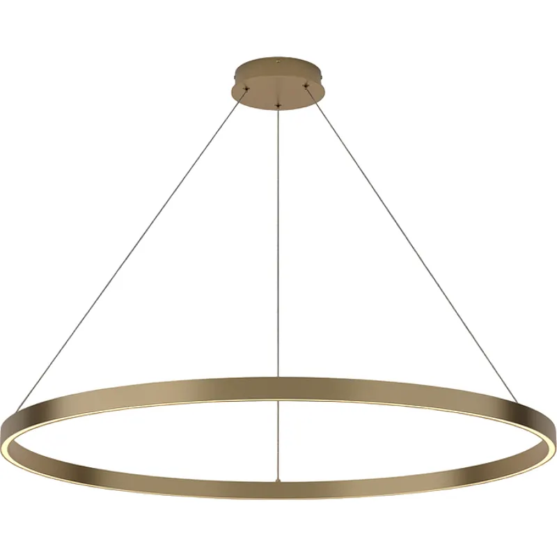 Подвесной светильник Maytoni Modern Rim MOD058PL-L54BS3K Латунь — идеальный выбор для тех, кто ценит современный стиль и высокое качество. Благодаря латунному цвету и алюминиевому корпусу, данный светильник станет эффектным дополнением любого интерьера, будь то для прихожей, для спальни, для гостиной или для кухни. Светильник оборудован встроенной LED-лампой мощностью 61 Вт, что обеспечивает световой поток в 3500 Лм.