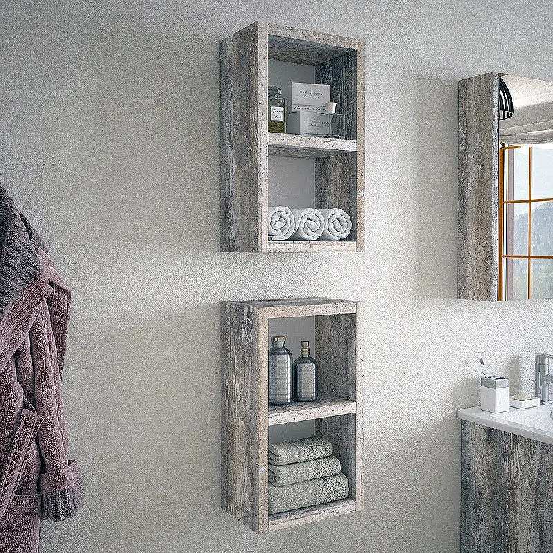 - Мебель из ЛДСП с древесным узором: Прочный материал и стильный дизайн делают полку долговечной и эстетически привлекательной.
