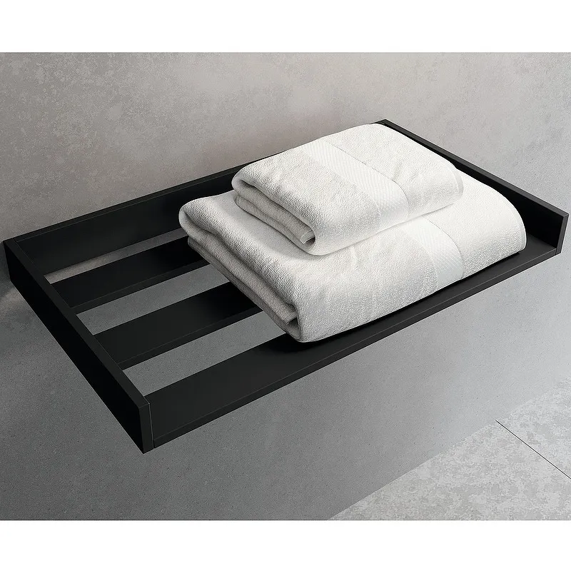 Полка для полотенец Novellini Kuadra R90AKFPA-H.Характеристики: Цвет: черный матовый. Материал: алюминий. Размеры (ШхВхД): 612х60х350 мм. Монтаж: настенный. В комплекте поставки: Полка для полотенец.