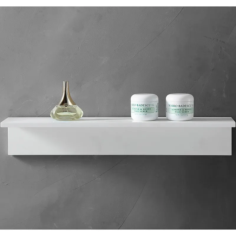 - Универсальность использования: Белый цвет полки идеально сочетается с любыми цветовыми решениями в интерьере.