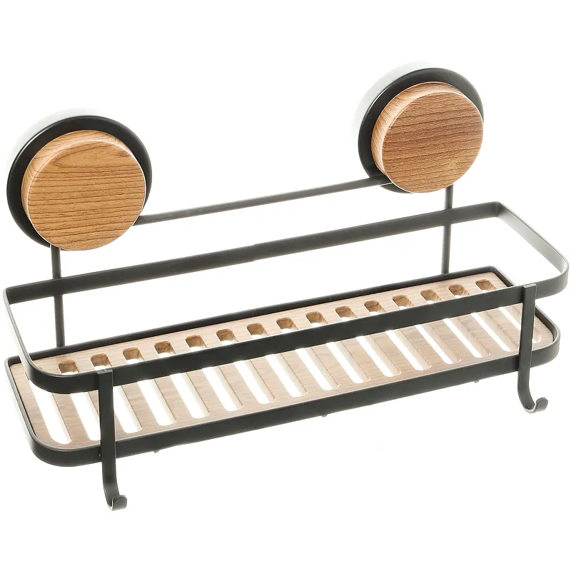 - Современный дизайн: Полка корзина сочетает черный матовый каркас и элементы из дерева, добавляя стиль в любое помещение.