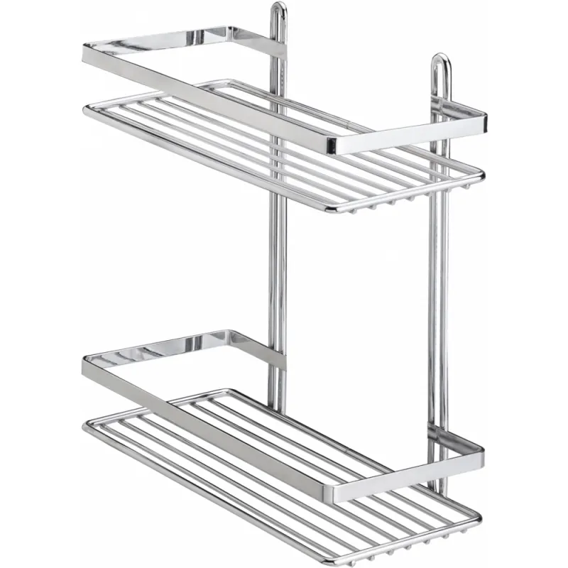 Полка-корзина Tekno-tel ES067 двухъярусная. Выполнена из высококачественных материалов. Подчеркнет современный стиль любой ванной комнаты или кухни.Характеристики: Материал: сталь. Цвет: хром. Количество ярусов: 2. Размер (ДхШхВ): 25х12х27 см. Монтаж: настенный. В комплекте поставки: полка-корзина.