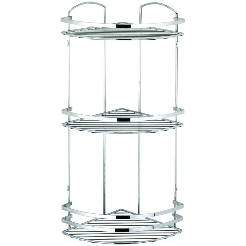 Полка-корзина Tekno-tel LM009 угловая трехъярусная. Выполнена из высококачественных материалов. Подчеркнет современный стиль любой ванной комнаты или кухни.Характеристики: Материал: сталь. Цвет: хром. Количество ярусов: 3. Размер (ДхШхВ): 24х24х62 см. Монтаж: настенный. В комплекте поставки: полка-корзина.