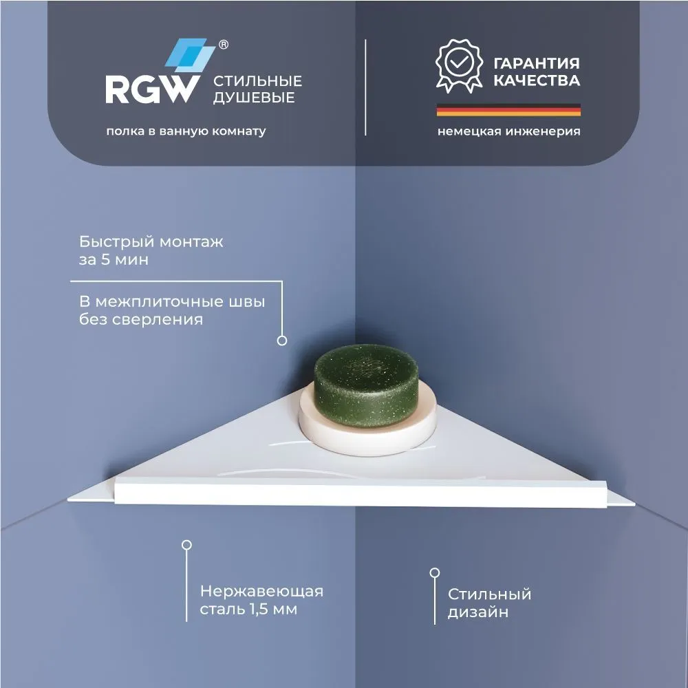 Полка для душевой зоны RGW MT-12W/Белая Волна — идеальное решение для вашего душевого пространства. Изготовленная из нержавеющей стали AISI 304, данная полка не ржавеет и отличается прочностью. Легкий монтаж без сверления плитки делает установку быстрой и удобной, что особенно важно для создания современного интерьера в ванной комнате.