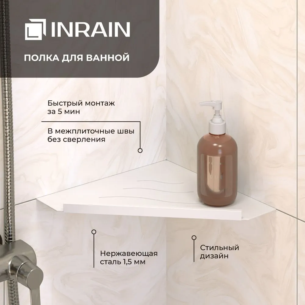 Полка угловая IN P13 Белая с бортом — это идеальное решение для вашей ванной комнаты. Купить полку угловую INRAIN можно прямо сейчас, обеспечив стиль и функциональность вашего душевого пространства.