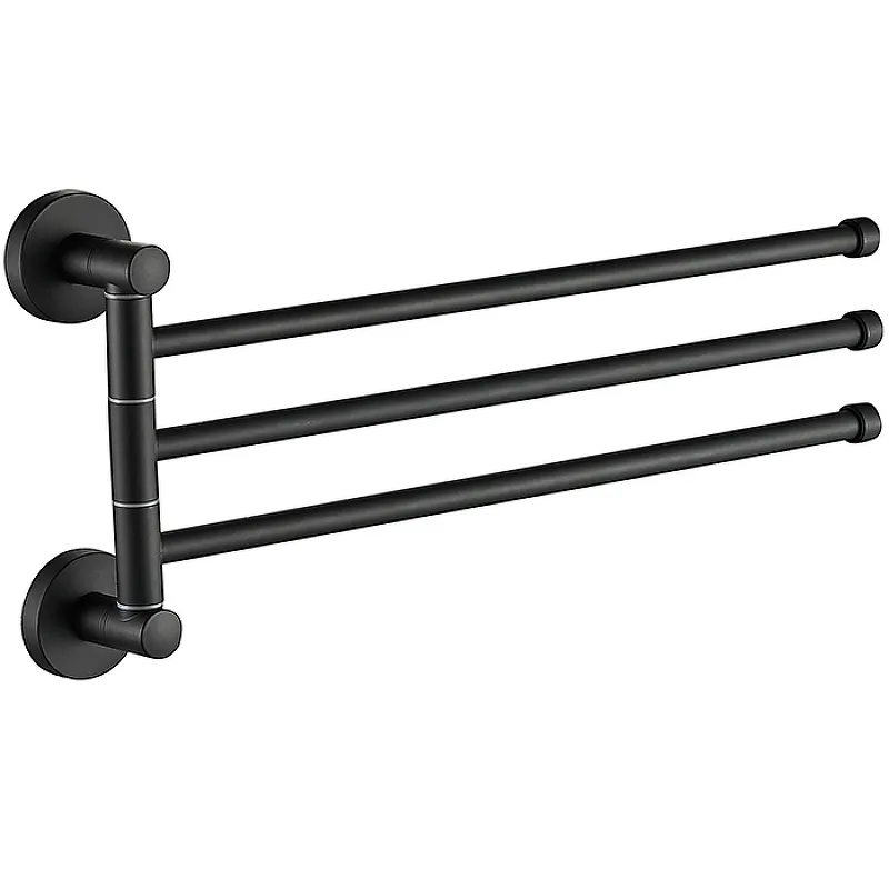 Полотенцедержатель Haiba HB8713 поворотный.Характеристики: Цвет: черный. Материал: металл. Размеры (ШхВхД): 37,5х18,5х5 см. Количество перекладин: 3. Монтаж: на стену. В комплекте поставки: полотенцедержатель.