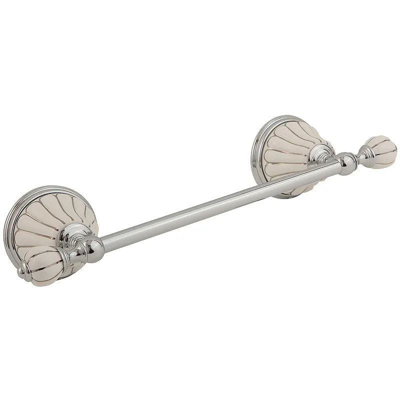 Полотенцедержатель Migliore Olivia 17561. Изделие выполнено из латуни и имеет высококачественное хромо-никелевое покрытие, которое при правильном уходе надолго сохранит свой блеск.Характеристики: Цвет: белый с декором платина, хром. Материал: латунь, керамика. Фактура: глянцевая. Форма: округлая. Размер (ШхВхГ): 34 х 7,6 х 10 см. Диаметр розетки: 7,6 см. Метод крепления: шурупы. Монтаж: настенный. В комплекте поставки: Полотенцедержатель. Крепления (шурупы).