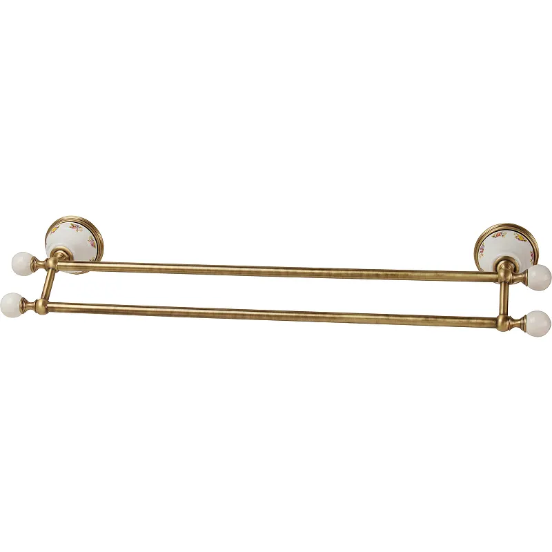 Полотенцедержатель Migliore Provance 17633 двойной.Полотенцедержатель Migliore стойко выдержит постоянное воздействие влаги, подчеркнув общий вид санузла.Характеристики: Цвет: бронза. Материал: латунь, керамика. Размеры (ШхВхД): 635х90х145 мм. Монтаж: настенный. В комплекте поставки: Полотенцедержатель.