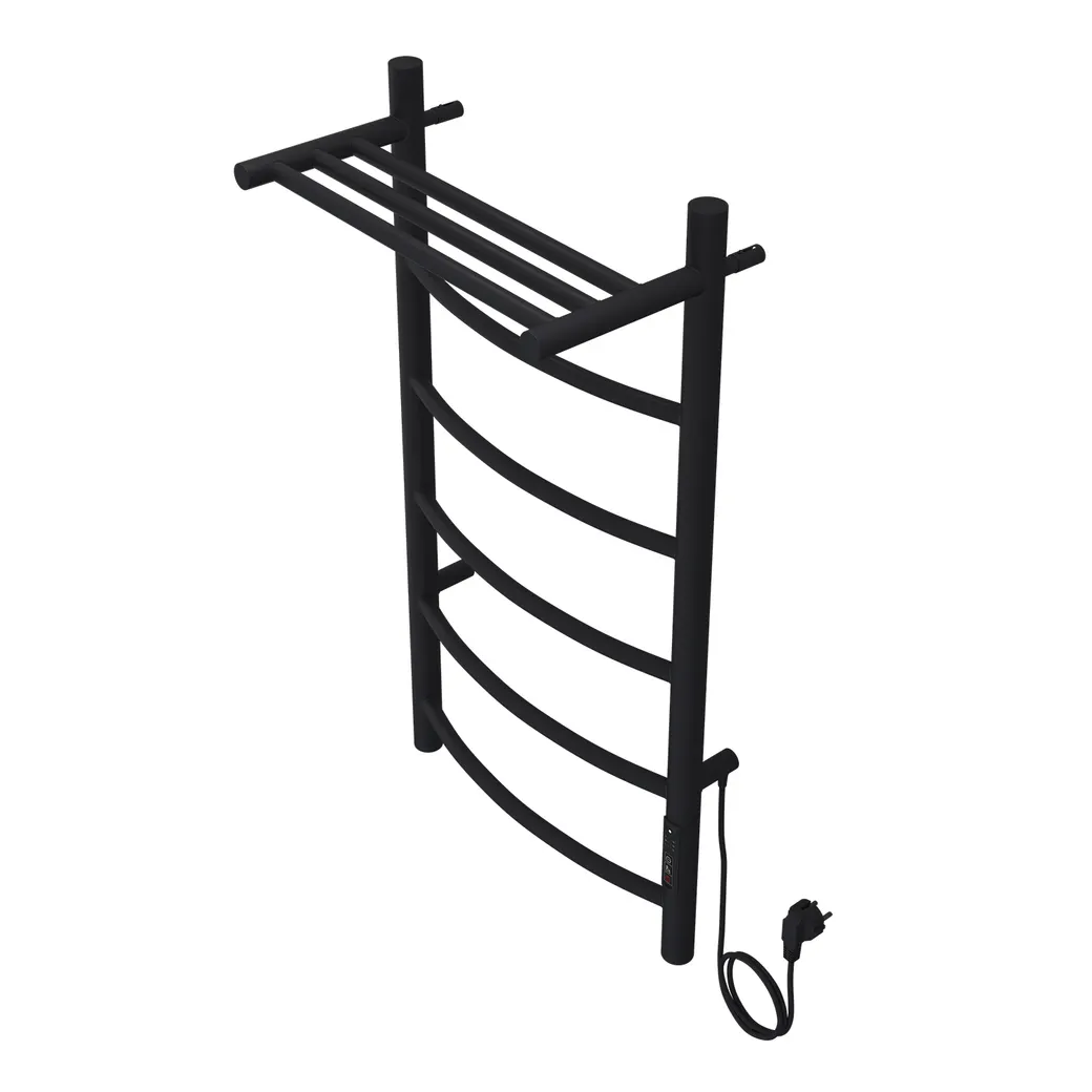 Полотенцесушитель электрический AZARIO VERONA 400/800 5 секций, с полкой, диммер справа, черный арт-AZ04848PB