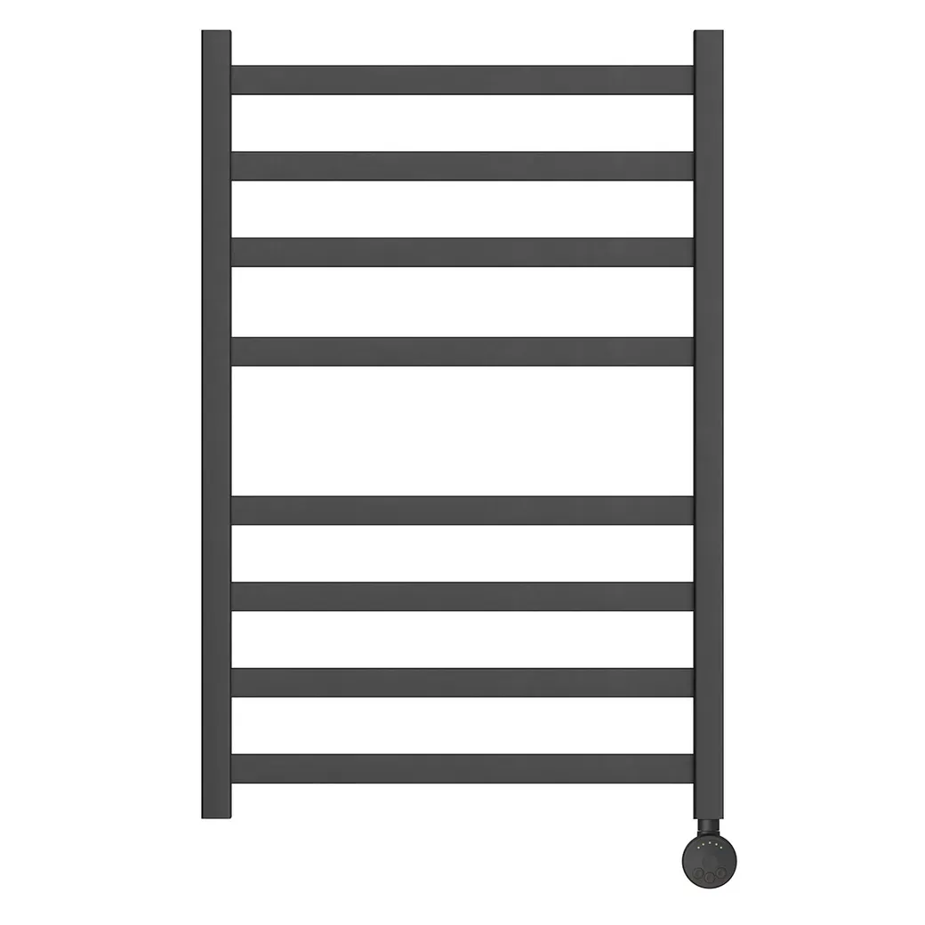 - Универсальный дизайн: Полотенцесушитель 500x800 подходит для любого интерьера, благодаря элегантному черному цвету и форме "лесенка".