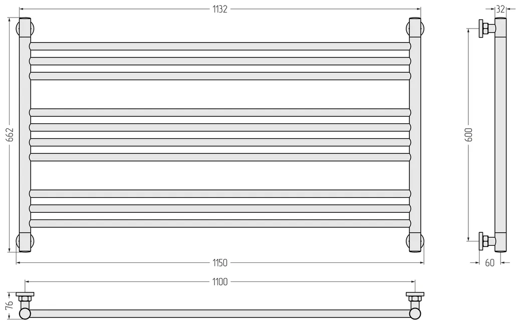 Полотенцесушитель водяной Сунержа Богема L 600х1100 RAL 1017 Шафраново-жёлтый арт-1017-0202-6011