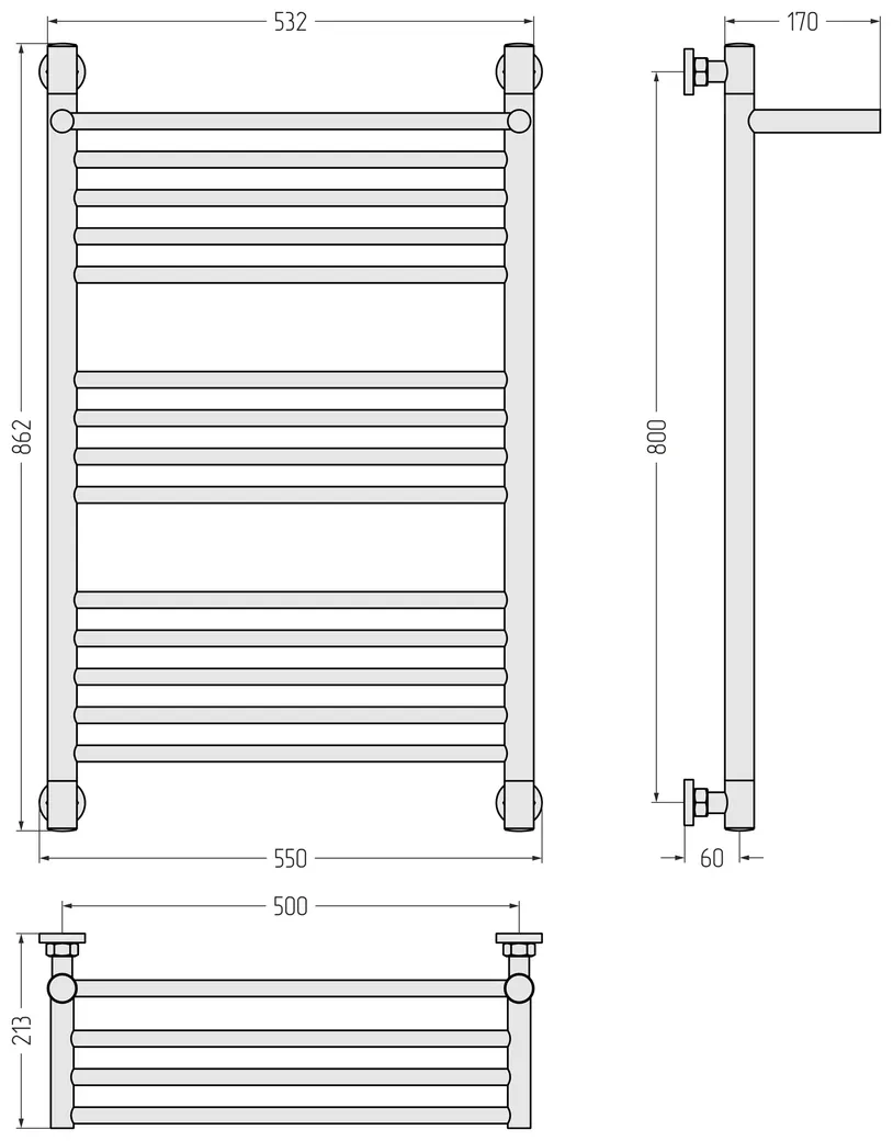 Полотенцесушитель водяной Сунержа Богема с полкой+ 800х500 RAL 5018 Бирюзово-синий арт-5018-0223-8050