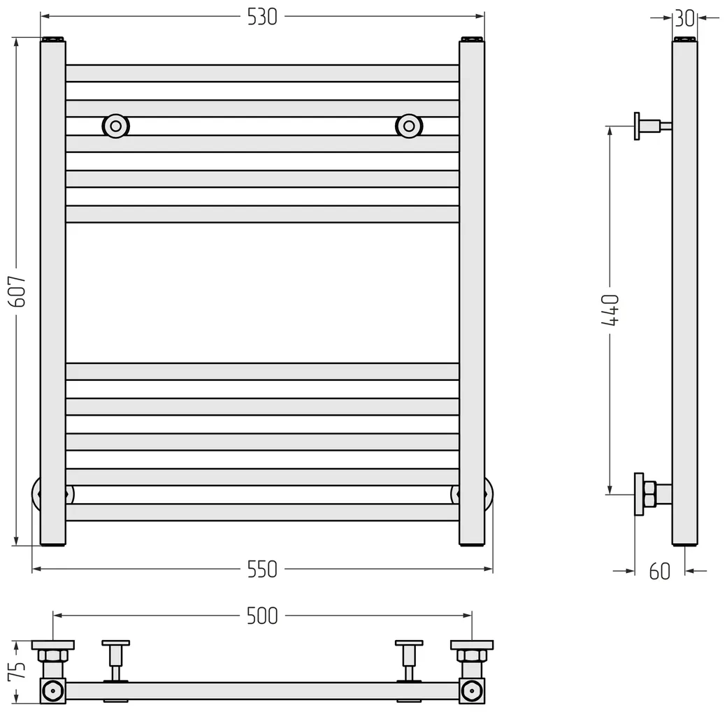 Полотенцесушитель водяной Сунержа Модус 600х500 RAL 1015 Светлая слоновая кость арт-1015-0250-6050